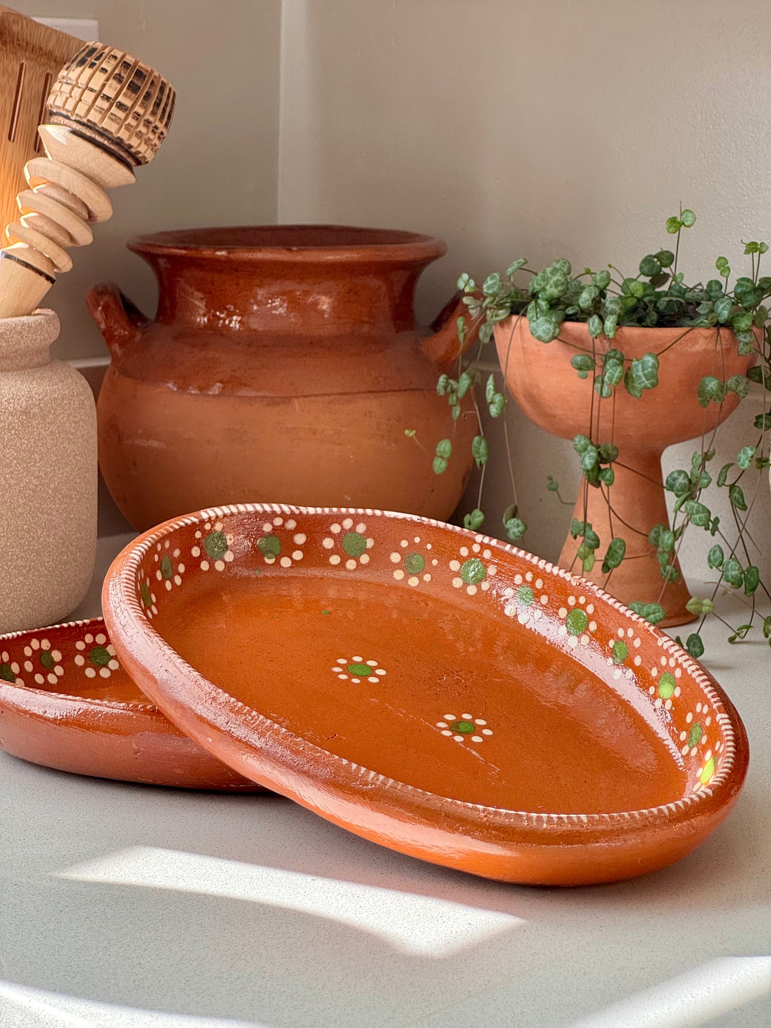 Oaxaca Red Clay Pottery 4Pc Set Plates And Clay Bowls Mexican Red Clay Pottery San Marcos Tlapazola Red Clay Pottery Plato Barro
