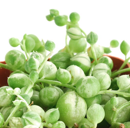 Senecio rowleyanus f. variegatus 'Variegated String of Pearls'