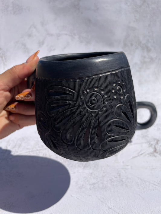 Oaxaca Black Clay Mugs - Taza Con Plato Barro Negro