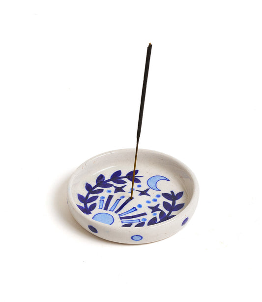 Lalita Round Incense Holder - Hand Painted Blue & White