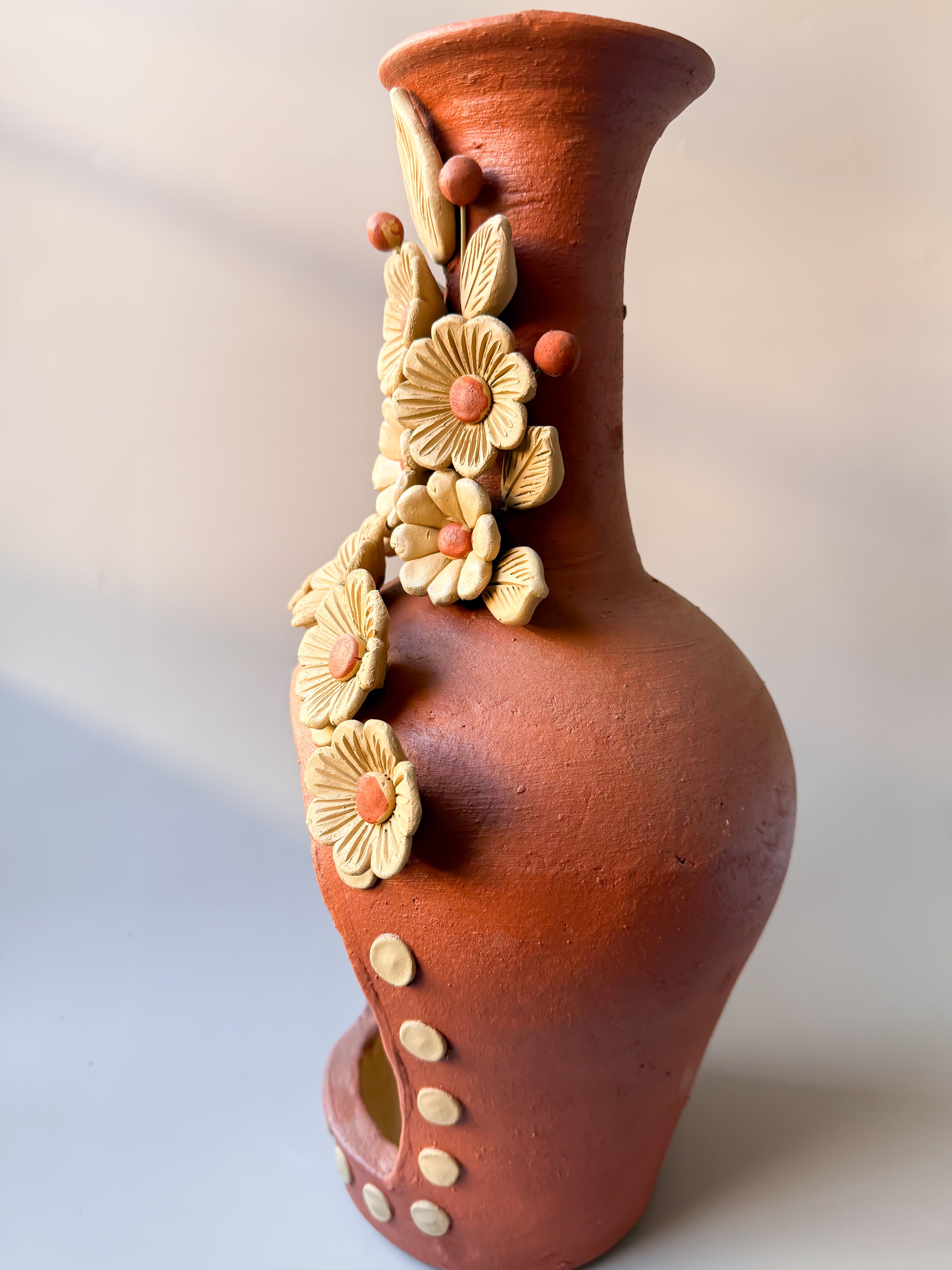 Embrace the tranquility of meditation or simply unwind after a long day as the fragrant smoke wafts from this charming clay chimney. With its intricate clay embroidery designs, our mini chimenea adds an artisanal touch to any room, elevating your home decor with its rustic elegance.