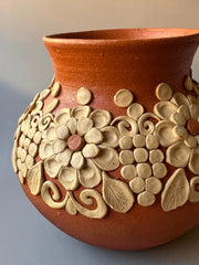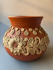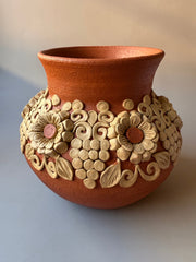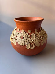 Elevate your interior decor with a stunning work of art that beautifully marries traditional craftsmanship and contemporary design. Our Round Vase, meticulously handcrafted in Atzompa, Oaxaca, showcases the unique clay embroidery technique that has been passed down through generations. Each vase tells a story of cultural heritage, dedication, and artistic finesse.