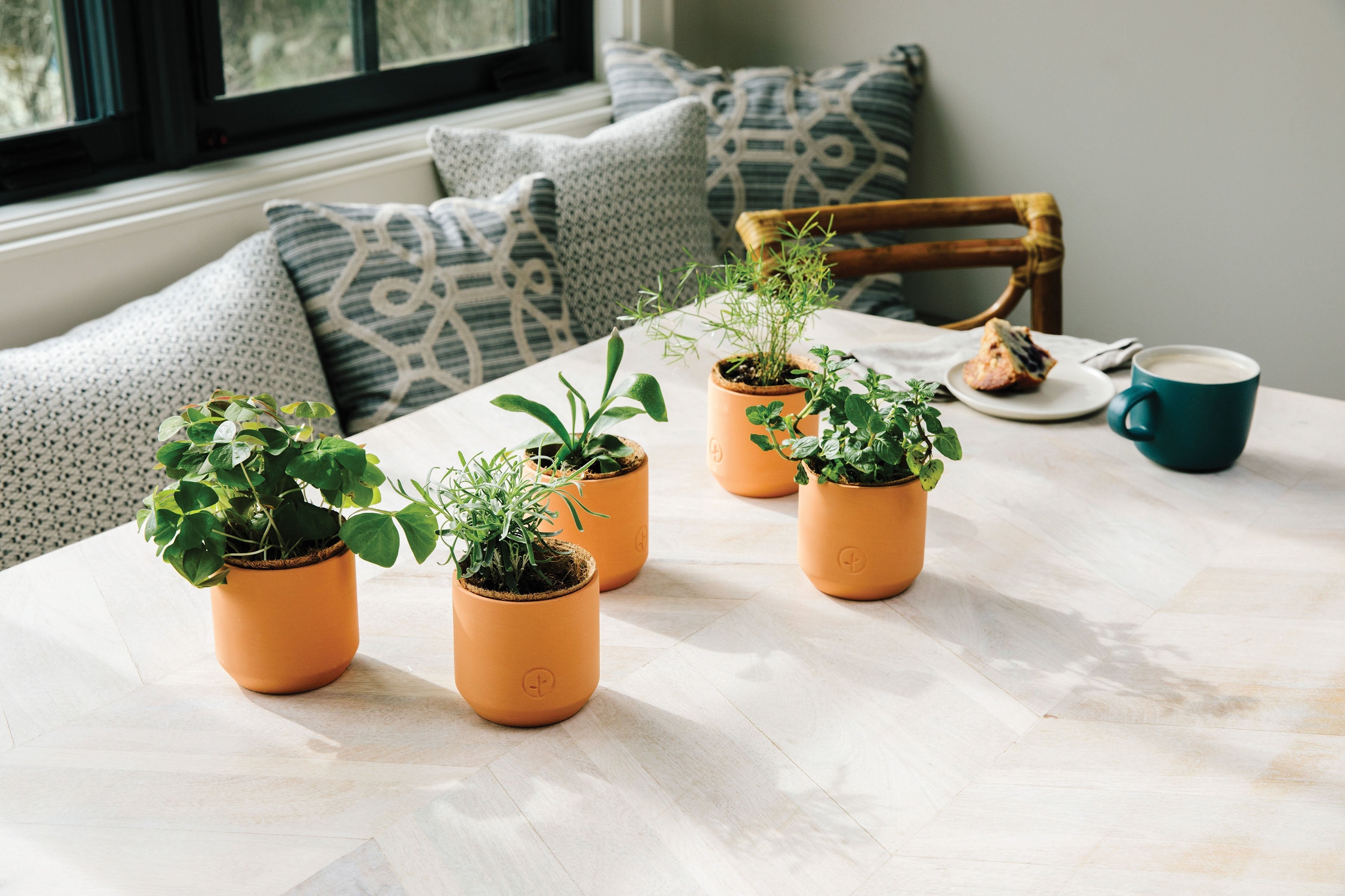 This tiny terracotta kit comes equipped with everything you’ll need to start growing, just add water and set in a sunny window. Planter features a glazed interior and is outfitted with a nested coconut pot filter that provides drainage and can be transplanted into a pot or garden if a larger plant is desired.