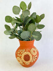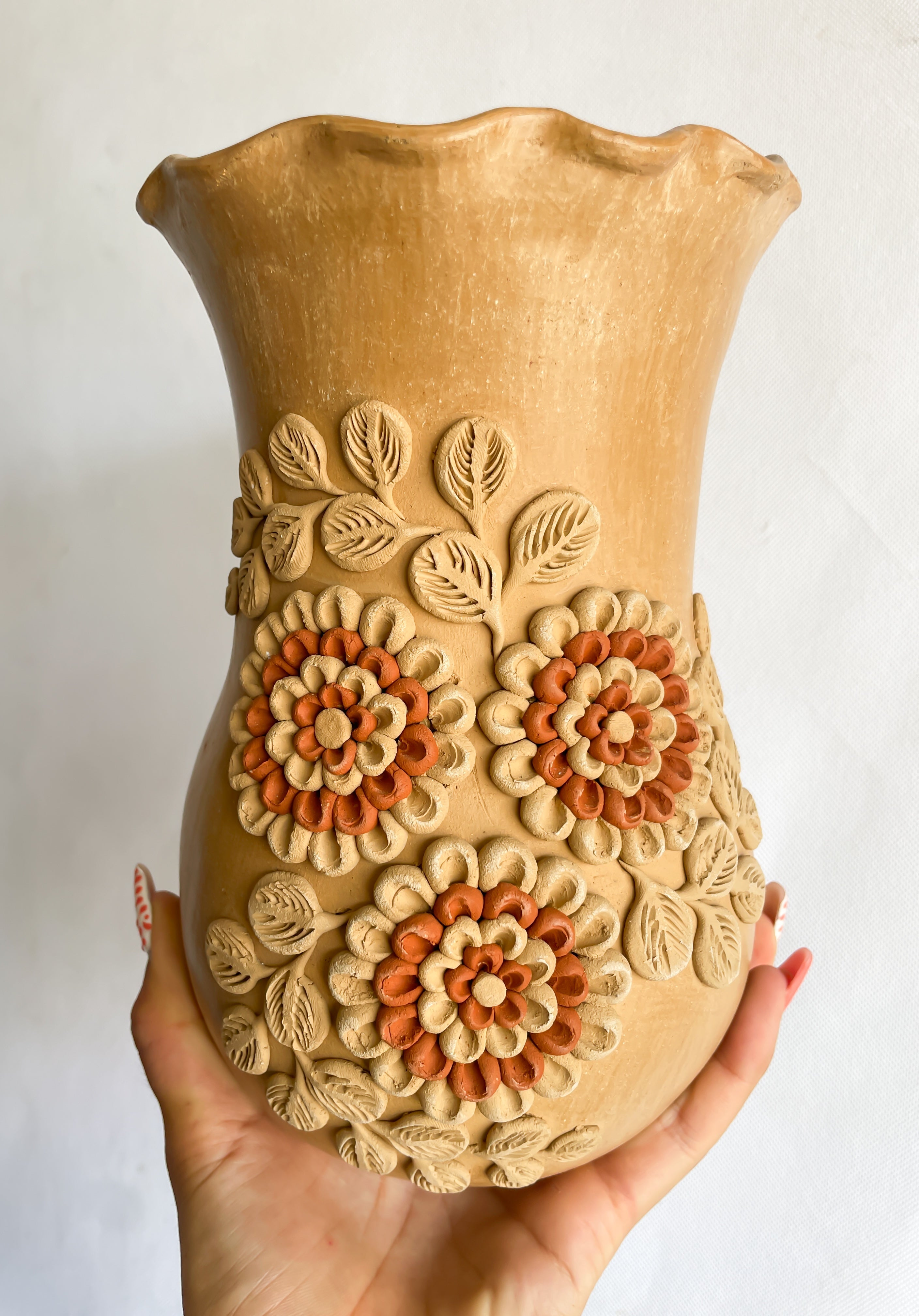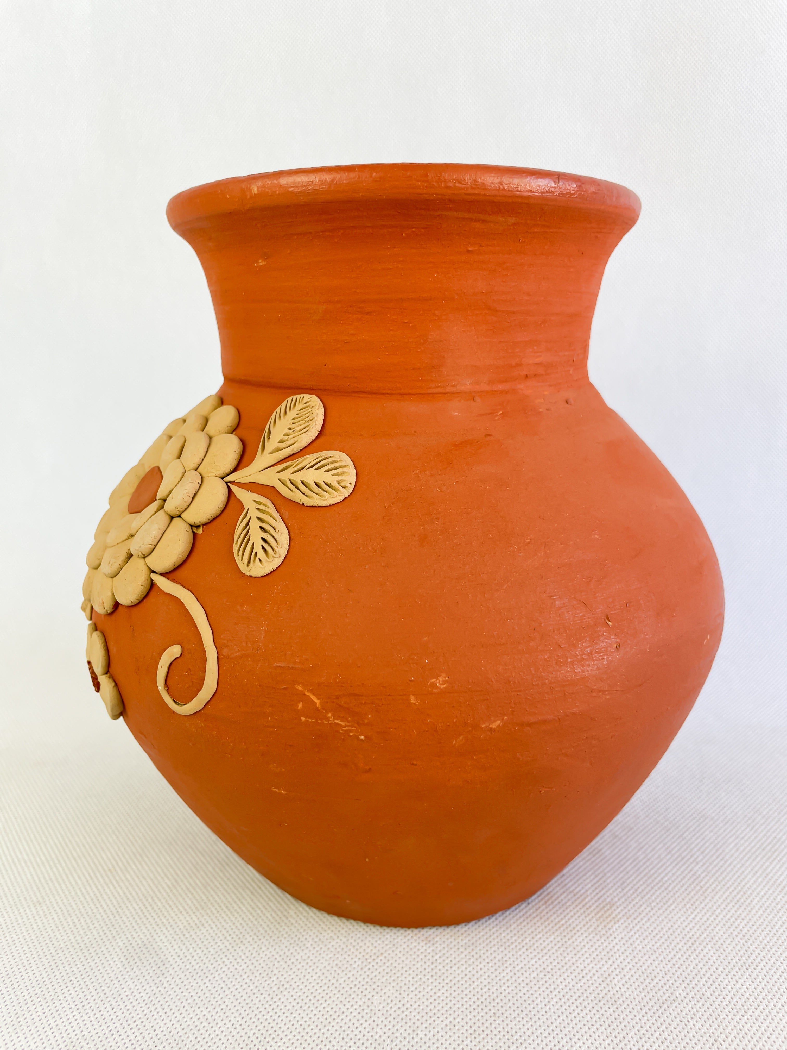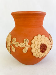Velasco Oaxaca Pottery Vase Flower Vase Florero Barro Rojo Clay Filigrana Clay Embroidery